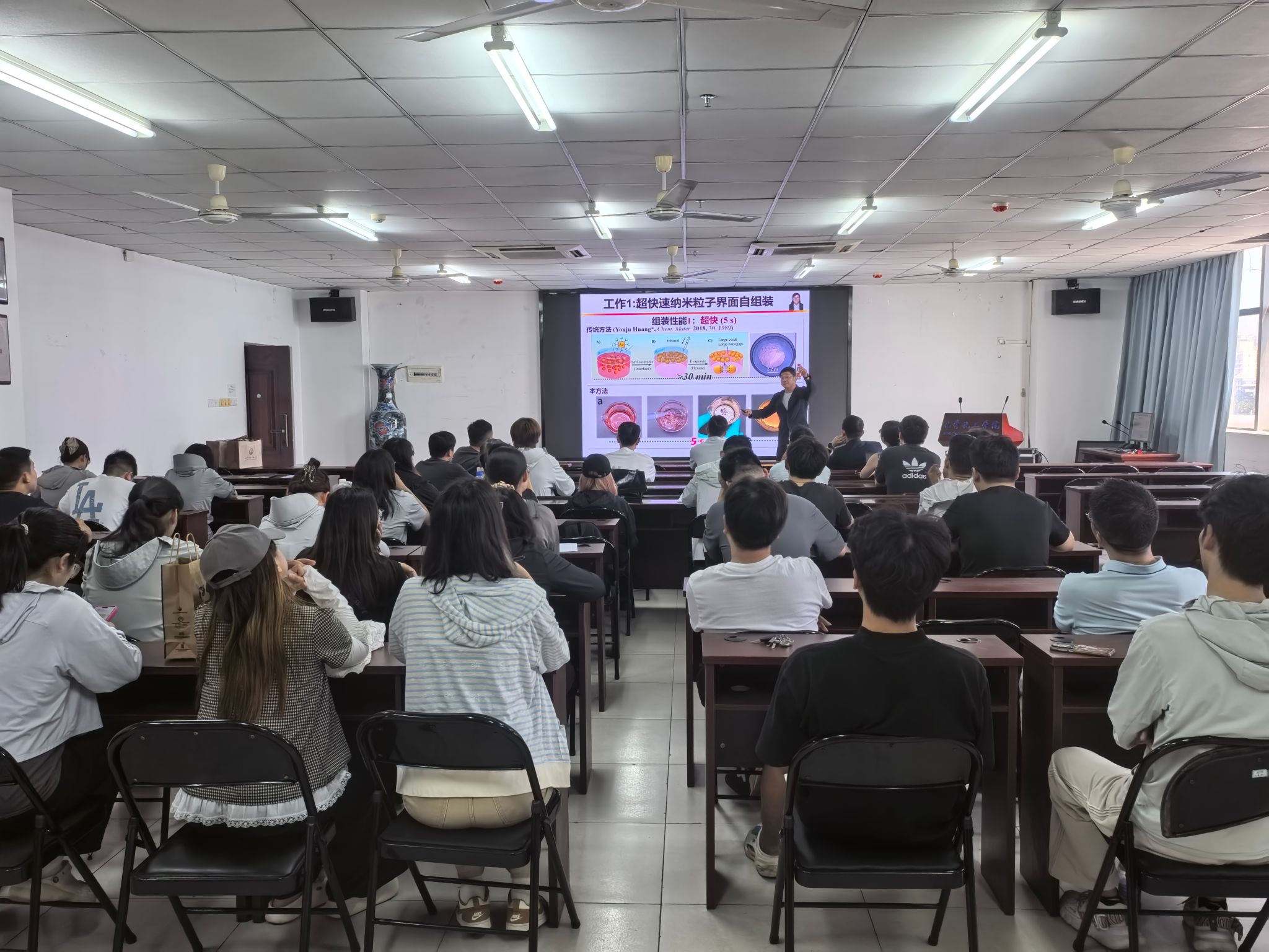 黄又举教授以《等离子激元纳米颗粒界面组装及其SERS传感应用》为题,系统介绍了团队在表面增强拉曼散射(SERS)领域的最新研究成果。团队成功实现了超大面积纳米颗粒超晶格二维薄膜的精准构筑,并开发了一系列高性能SERS生物传感器,在生物医学实时检测领域展现出广阔应用前景。